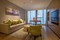 该项目位于江宁的秣周东路,是一家绿色环保的套房式酒店。在软装配饰上,充分围绕着“绿色、环保、人文”对家具、摆饰、装饰画、布艺进行选购及摆放。强调了现代感和时尚感。随着社会物质财富的丰富,人们开始更多的追求精神享受,力求从"物的堆积"中解脱出来,走出原有的条条框框,一步一步想着整体艺术美感,空间层次感靠拢。以绿色为主题颜色,充分体现了“假日”二字。让每一位入住的旅客都仿佛置身于大自然中,真正全身心的放松、休闲、愉快度假。