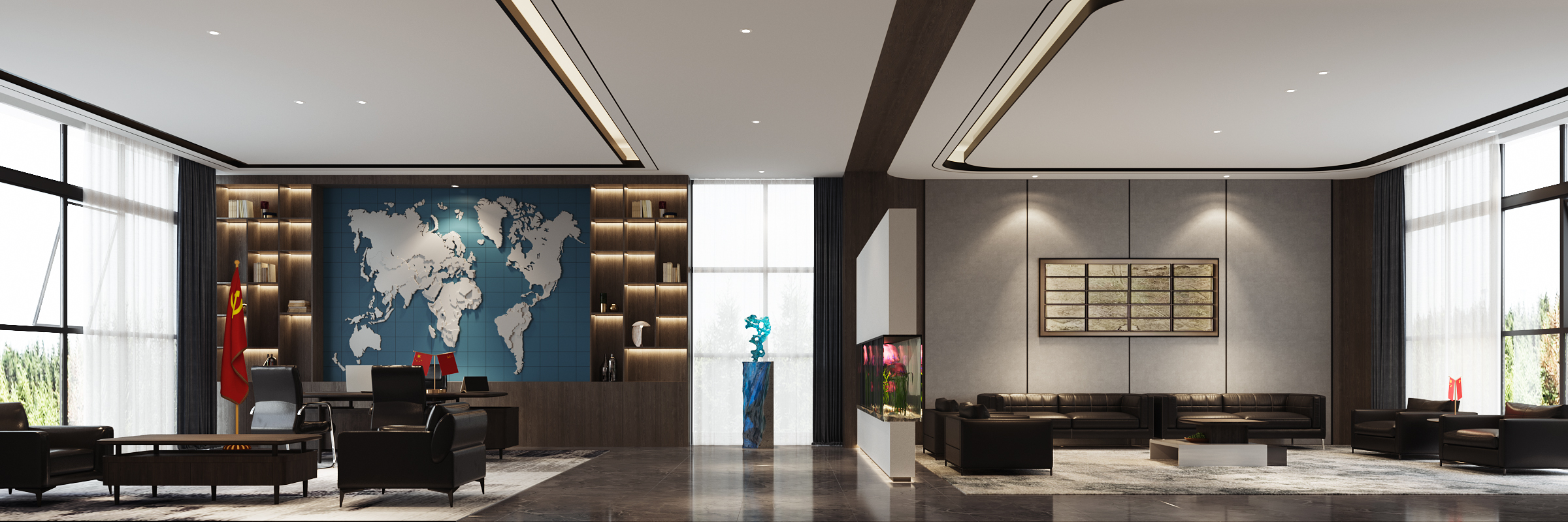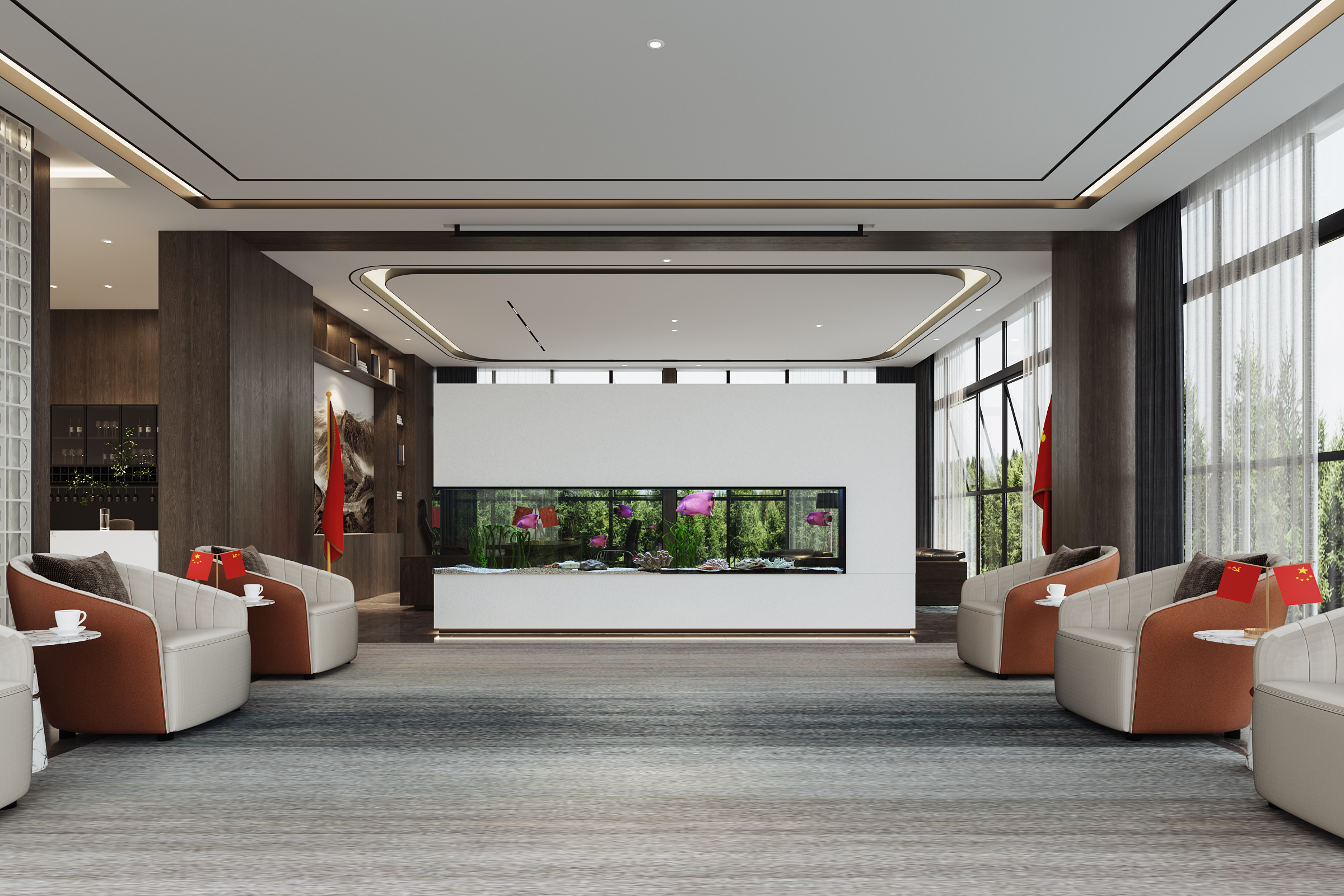 空间设计定位:商务接待,配套服务,传达公司理念与文化,体现产品体验。