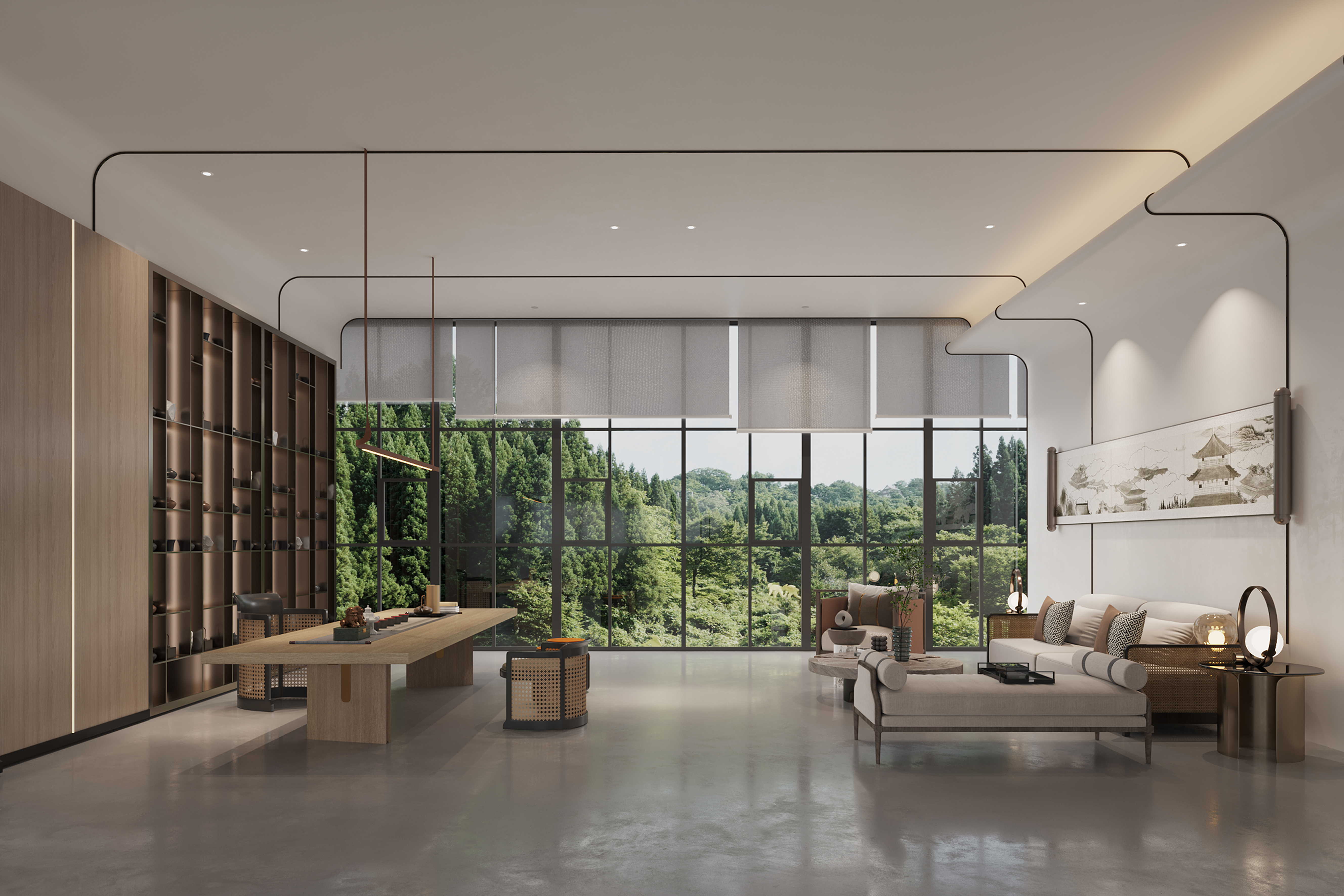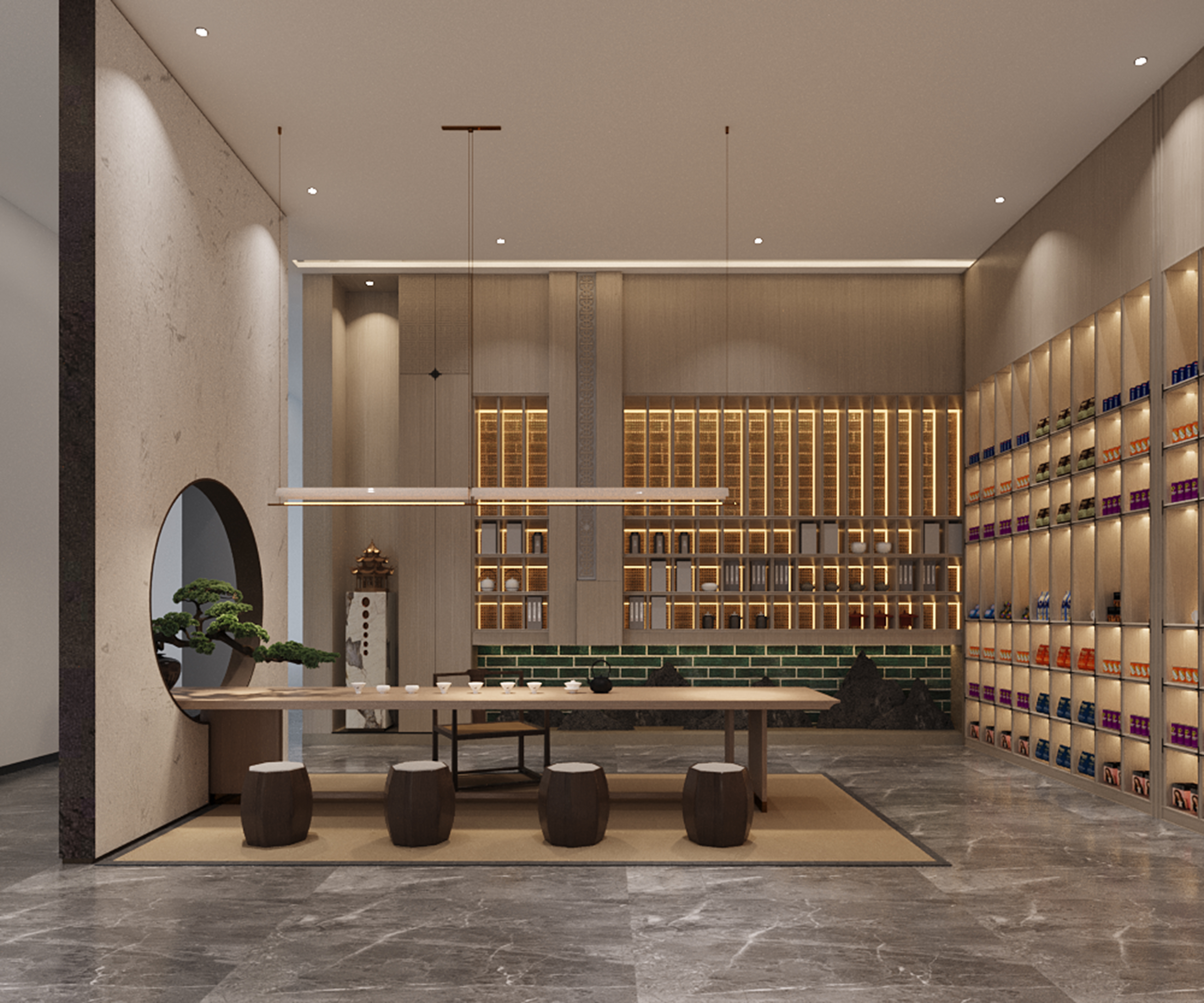 步入大厅,国科文化展示、产品展示与空间融为一体;即保持商品的独立性,又不失空间服务于人的本质。设计提倡纯粹和统一性,与周边环境形成对立统一;致敬本土文化的现代演绎,对于项目业态的识别度和品牌的提升有积极推动作用。