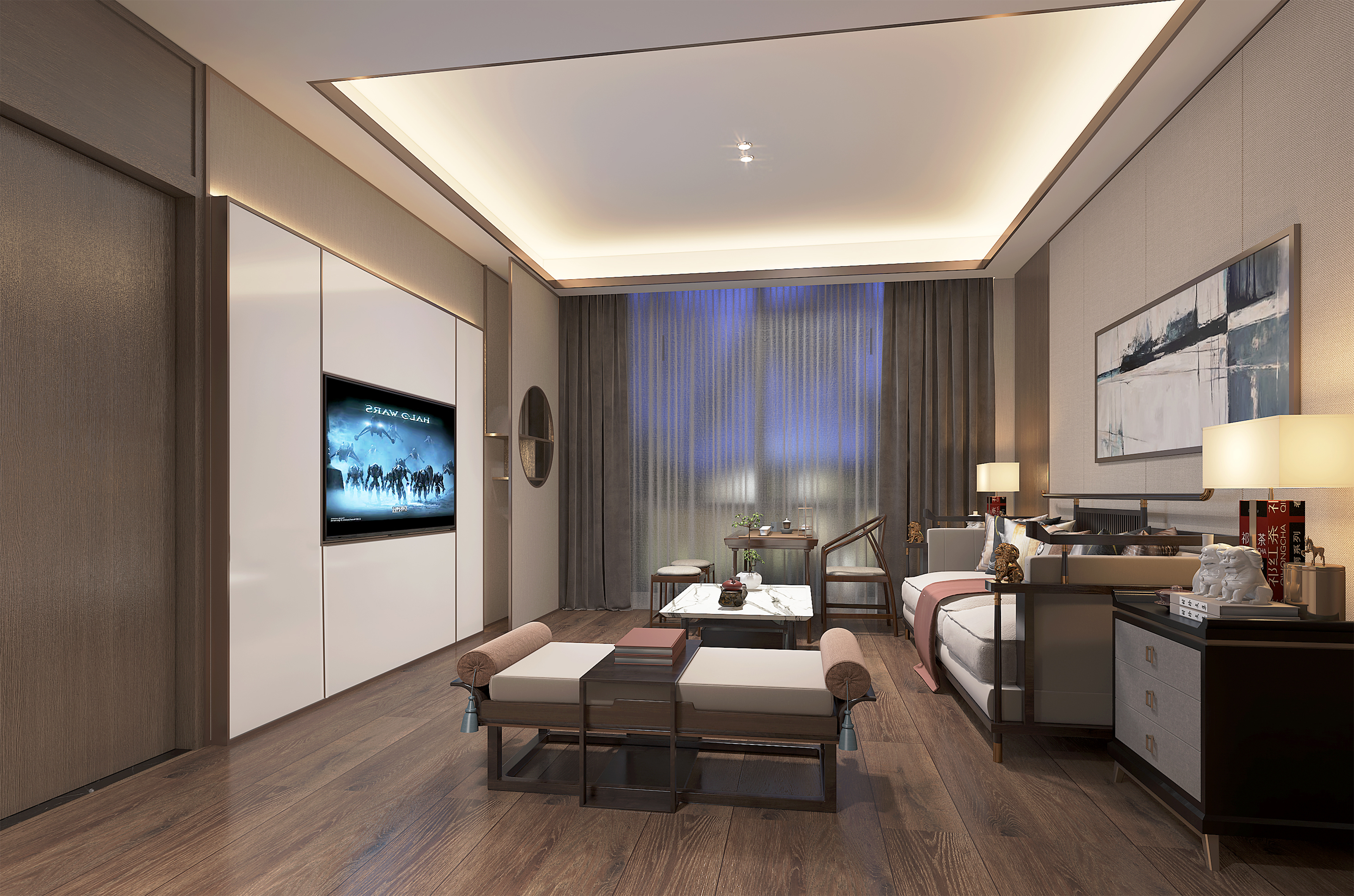 设计理念:团结,敬业、专业、人文为出发点,以“茶”点带面的设计主题展开;为传达国科集团产业为目的所定的设计风格、材质与色彩都依依相扣;