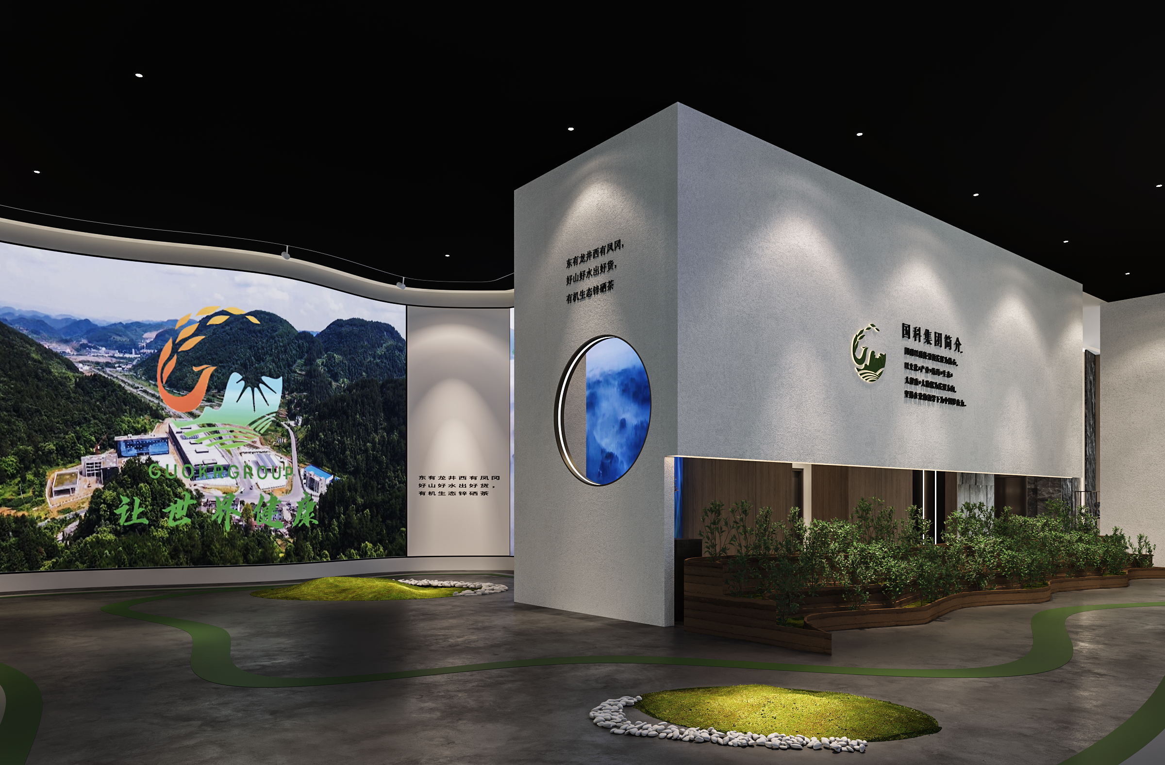 本项目坐落于贵州遵义凤冈。依托“茶海之心”“中国茶旅一体镇”、“全国现代高效示范农业园区”的知名优势和有利条件,围绕大健康产业,与茶海之心景区大环境保持协调,是集养生、休闲、娱乐等为一体的高品养生基地。国科集团始终坚持“以科技为核心发展”理念。通过科技技术工艺提取、萃取茶叶中的锌硒元素,精制成高附加值的“锌硒茶饮料、锌硒矿泉水、锌硒口服液、锌硒颗粒”等健康良心食品。本次设计包含:酒店、办公楼、会议大厅等各项目正在如火如荼,有条不紊的开展工作。