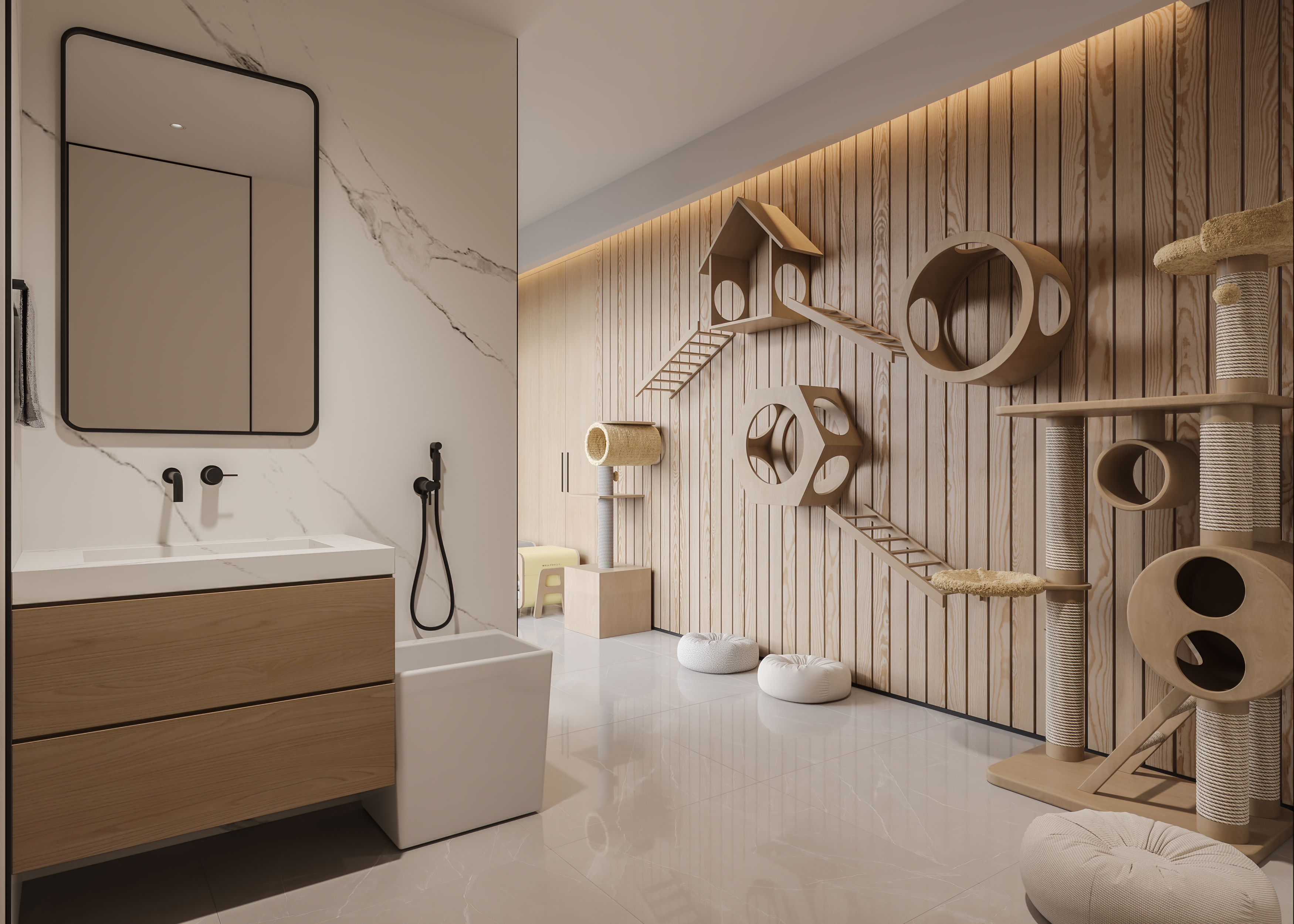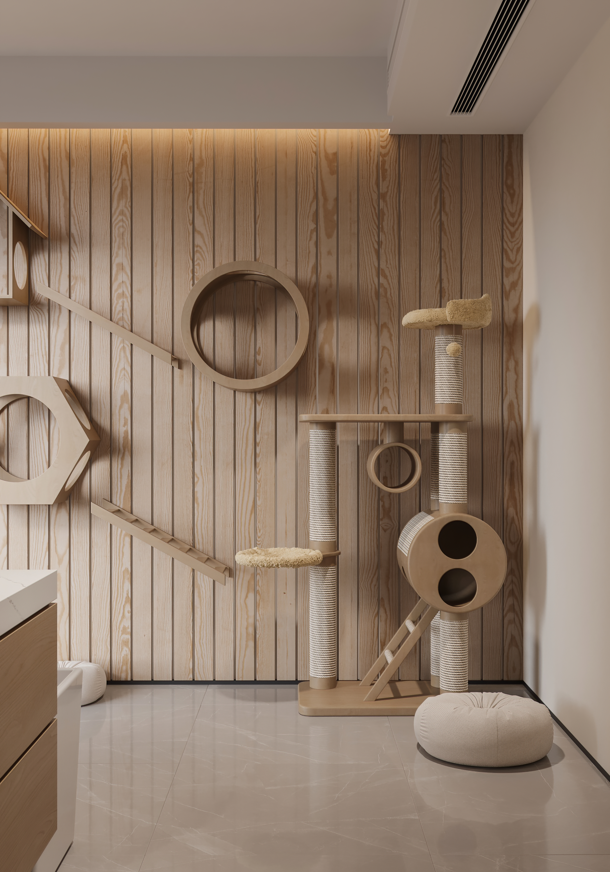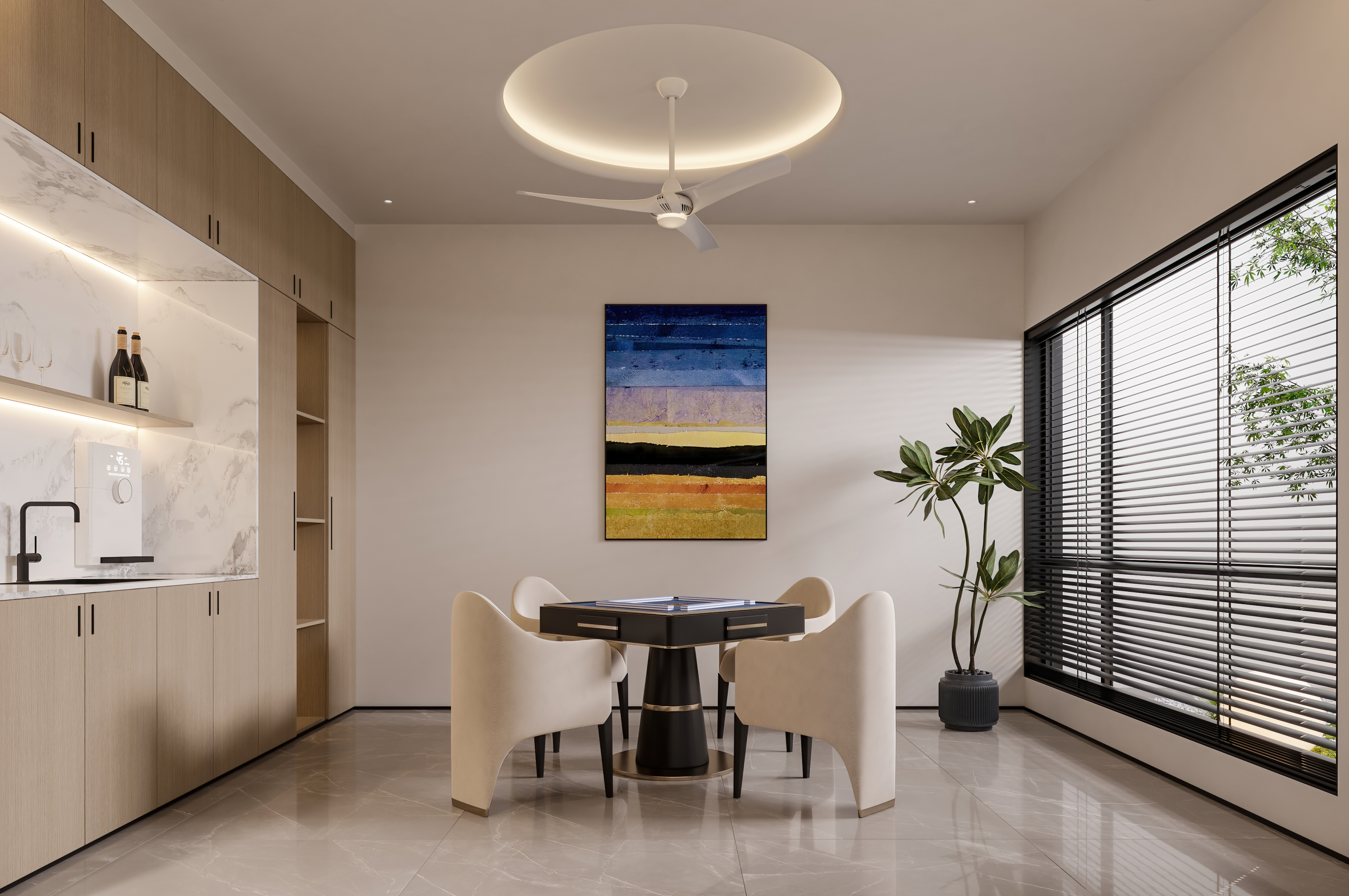 本案没有一味追求房间的数量,在确保功能性空间和储物功能外,释放出更多活动空间,让业主的生活体验更为多样,表达一种自在闲适的生活方式。