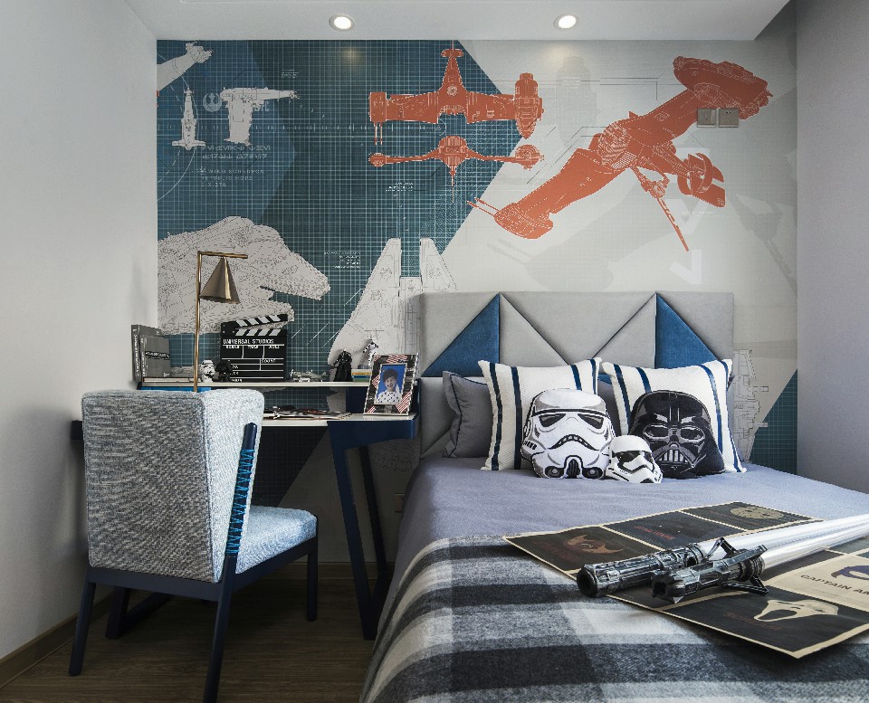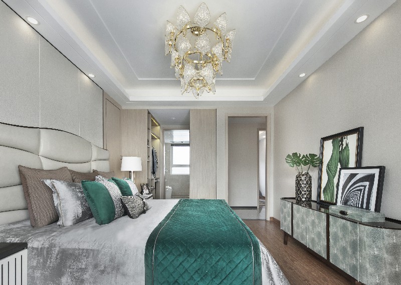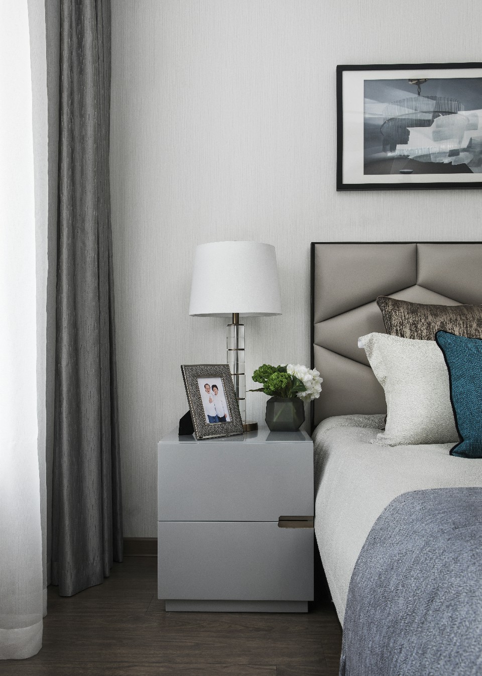 布艺,皮质床头,金属灯具等工艺的巧妙运用,